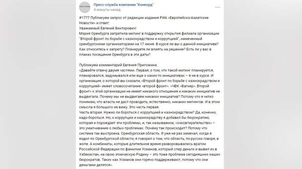 большого не вижу», — цитирует Пригожина пресс-служба компании «Конкорд».