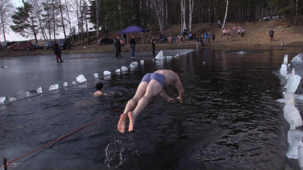 Вопреки ожиданиям, в водоеме были не просто снег и вода, но еще лед и ветки.