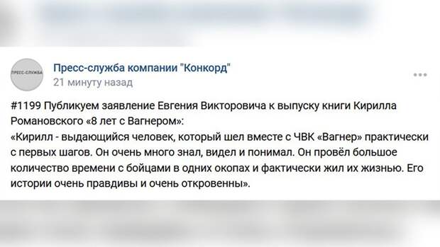 Бизнесмен Евгений Пригожин прокомментировал выход книги