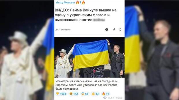 поступком певицы Лаймы Вайкуле, которая во время концерта в Паланге развернула флаг Украины.