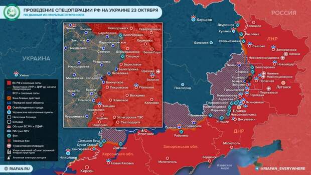 В воскресенье, 23 октября, представитель МО РФ Игорь Конашенков сообщил, что украинские военные остались еще без двух нефтехранилищ с топливом для бронетехники.
